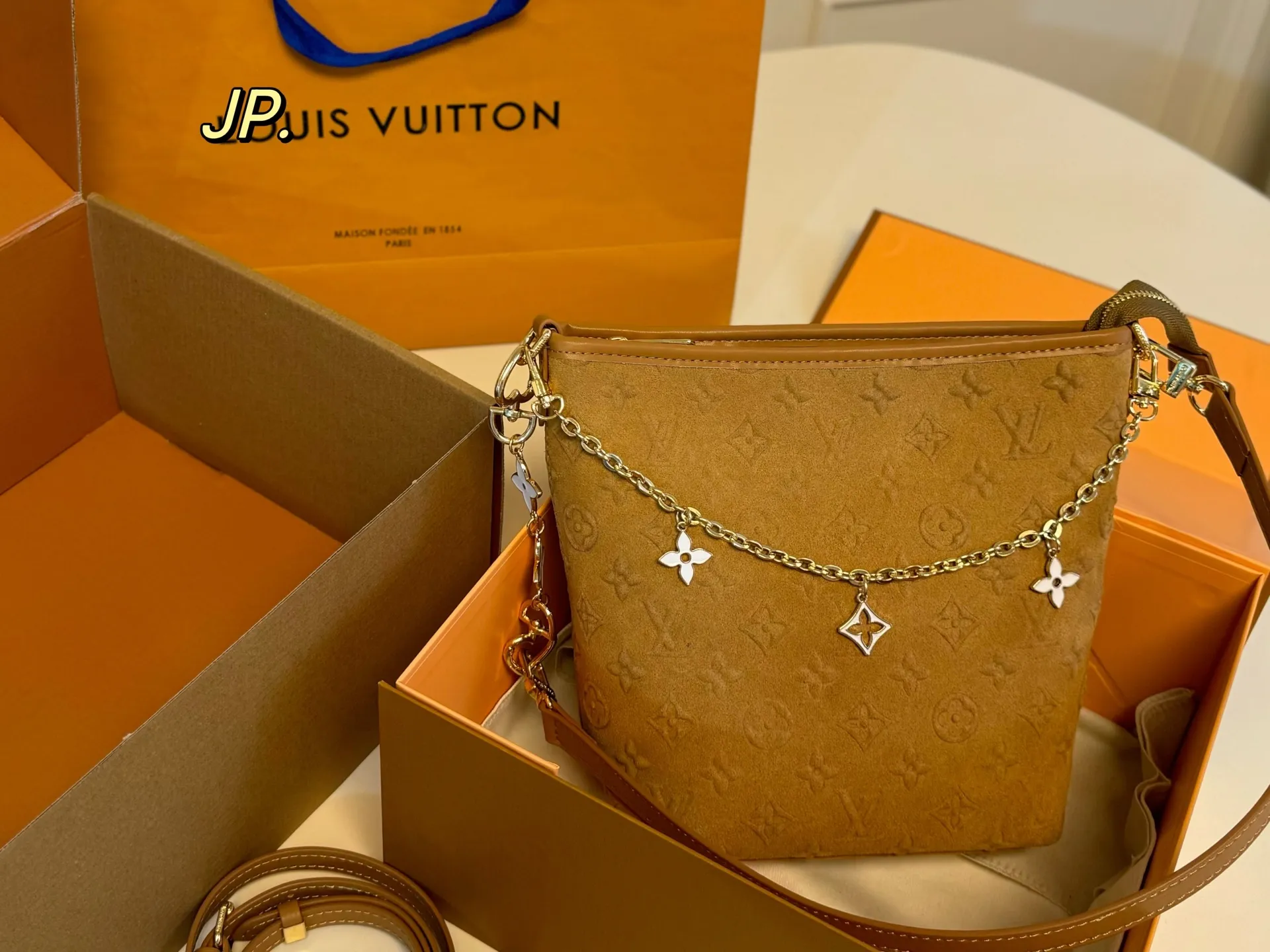 LV suede vintage chain bag, size: 17×20cm