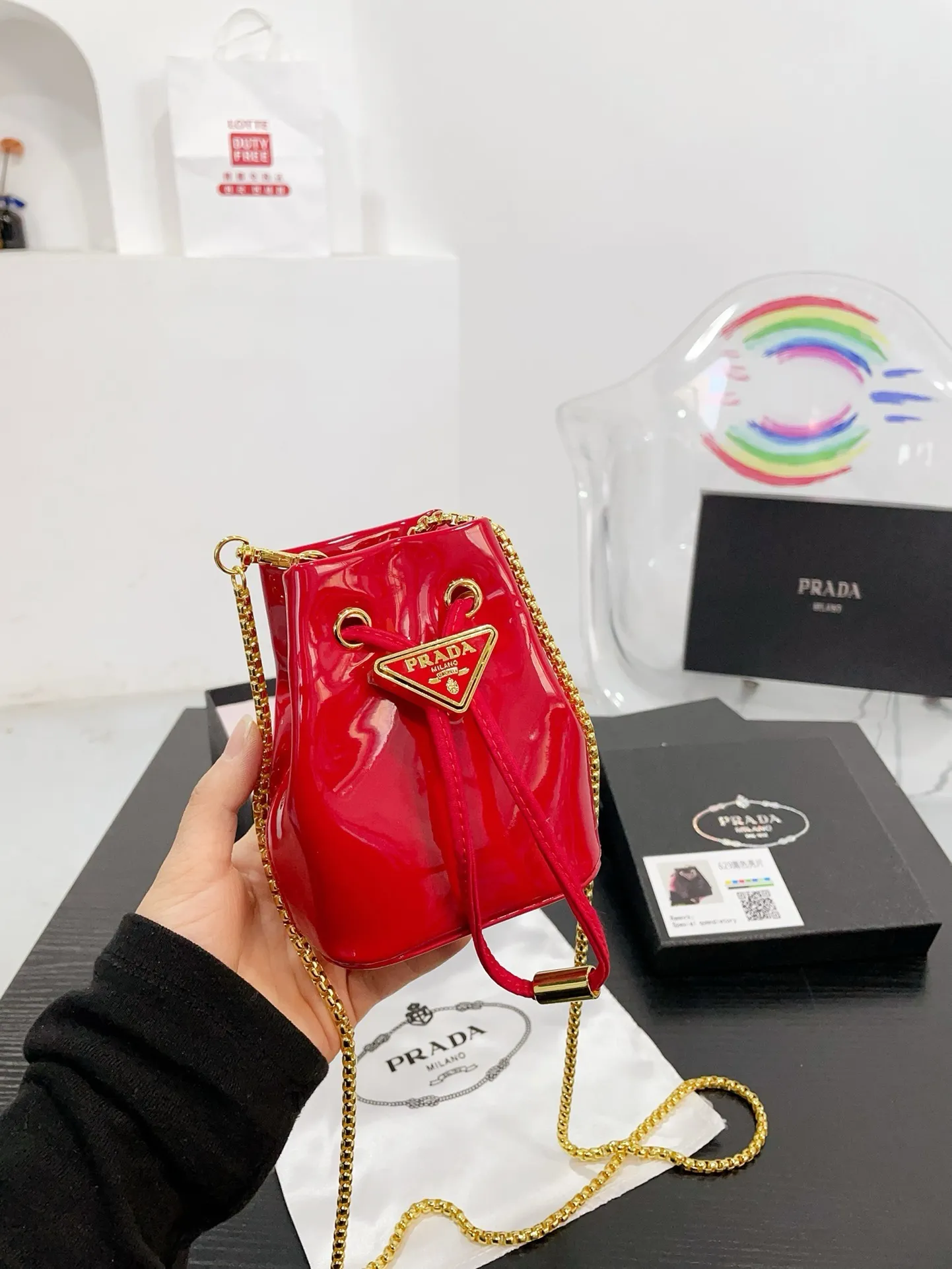 PRADA mini sequined bucket bag, so cute! SIZE: 10*13cm