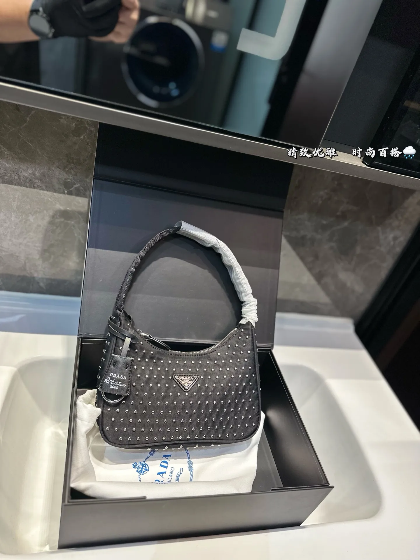 PRADA hobo studded shoulder bag SIZE: 21*11