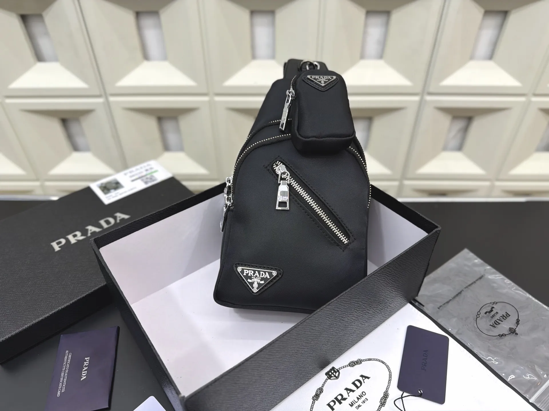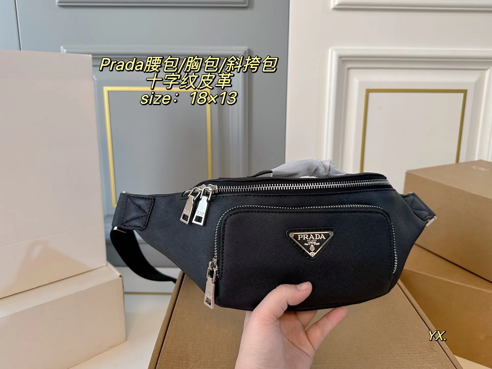 Prada, size: 18×13cm, can be used as a waist bag, chest bag, or crossbody bag.